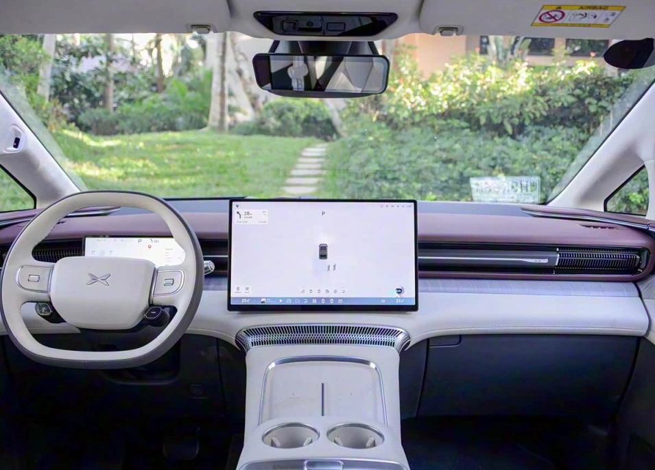 坐进车里,能感觉到小鹏想把它往“移动星空舱”那个感觉打造。新增的“云间玫棕”内饰配色,用了大量软性材料包覆,还加入了4.2米长的进口阿尤斯真木饰板,氛围灯一亮,质感营造得不错。高配的二排是两个独立零重力座椅,能一键躺平,家里老人孩子坐后面跑长途能舒服不少。像车载冷暖箱这样的贴心配置也没缺席,夏天冰镇饮料,冬天温个牛奶,很实用。
