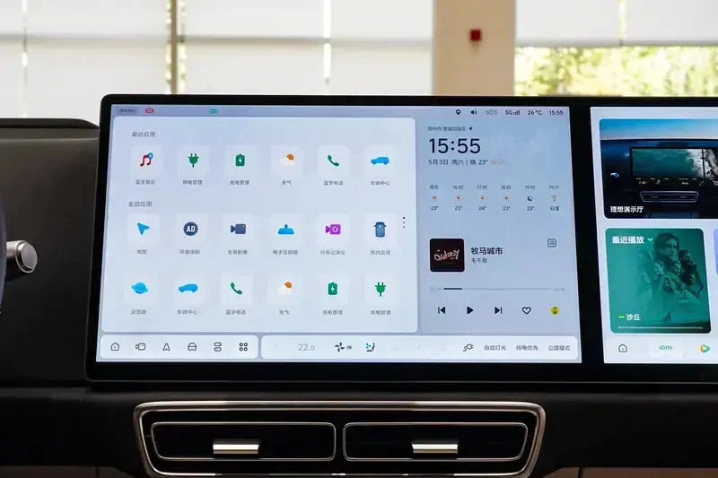 坐进车里,你就明白“移动的家”不是白叫的。双联大屏、高清HUD、能“记住”每位家人喜好的“理想同学”,这些都是基本操作。它的核心优势在于对家庭场景的精准拿捏:近3米的轴距换来的是奢侈的后排和超过1米进深的后备箱,孩子的自行车、露营装备都能轻松塞下。标配的前排座椅加热通风,高配的冰箱、沙发(Nappa真皮座椅),直接把客厅搬上了路。相比问界M7,L6的空间利用率更高;比起岚图FREE+,它的座舱生态更成熟、交互更无感。在这里,科技不是用来炫技的,而是为服务和舒适服务的。