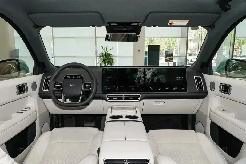 先说面子,理想L6深得家族真传。那条标志性的2.2米星环灯带,往那一停,辨识度直接拉满,气场一点不输BBA的同价位车型。4925毫米的车长,配上精悍的短前悬和溜背线条,让它看起来不像传统中大型SUV那么笨重,反而多了几分动感。新增的“天青色”车漆是个点睛之笔,阳光下泛着珠光,很对年轻家庭胃口。和主打运动科技的极氪001或是风格前卫的蔚来ES6相比,L6的设计走的是一条更稳妥的“主流豪华”路线,不求惊艳,但求耐看、显好,这恰恰是它的聪明之处。