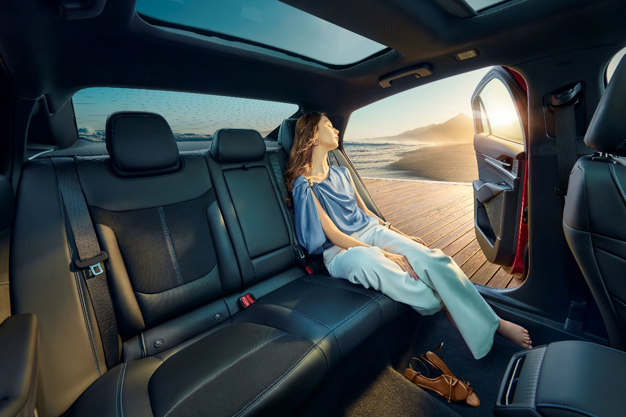 内饰方面,福特新蒙迪欧提供豪华座舱体验,配备1.1米超大天窗与高品质音响系统,后排座椅可调节,后备厢空间灵活,满足家庭出行与休闲旅行的多样需求。近5米的车身与2945mm的轴距提供了极为宽敞的腿部空间,让乘客能够享受舒适的驾乘体验。