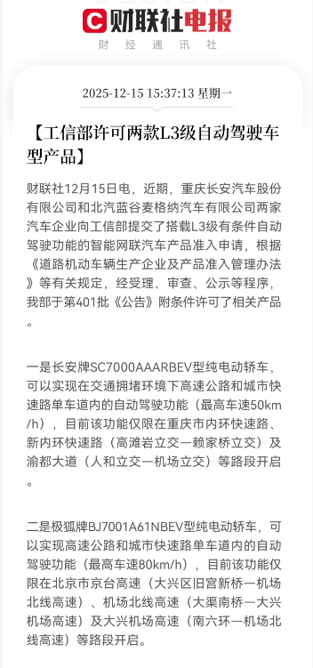 自动驾驶技术迈向量产阶段,安全性始终是核心关注点。2025年12月15日,极狐阿尔法S(L3版)正式取得工业和信息化部自动驾驶车型产品准入许可,并将在北京市特定区域开展L3级有条件自动驾驶试点。这不仅是自动驾驶技术发展的重要里程碑,更是对智能汽车安全标准的一次全面升级。极狐以“安全是生命线”为核心理念,通过构建覆盖研发、生产、验证、运营、服务的全流程安全体系,展现了强大的系统性安全保障能力。其独创的“一核三环”安全开发体系,以及横跨全价值链的“大安全”运营模式,为自动驾驶技术的规模化应用奠定了坚实基础。