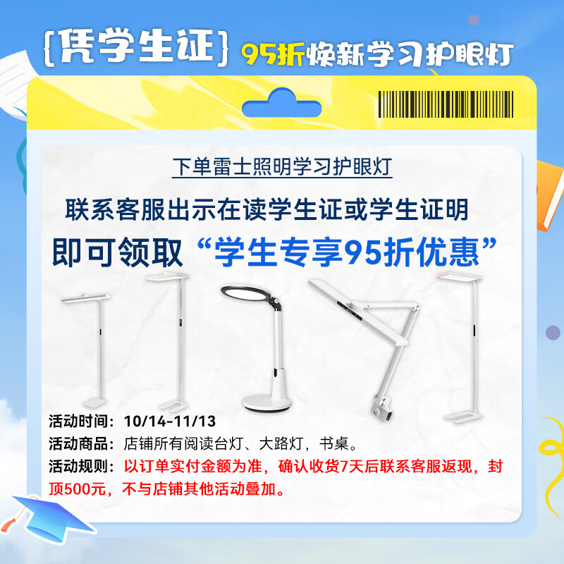 雷士未来光L8立式护眼灯采用全光谱光源,显色指数Ra98,RG0豁免级蓝光+无可视频闪设计,从光源层面保护视力。灯头支持180°旋转和上下独立调光,可精准聚焦学习区域,避免桌面阴影。智能控制方面,支持米家APP、语音指令和遥控器操作,提供阅读、夜灯、娱乐等8大场景模式。防眩光指数UGR