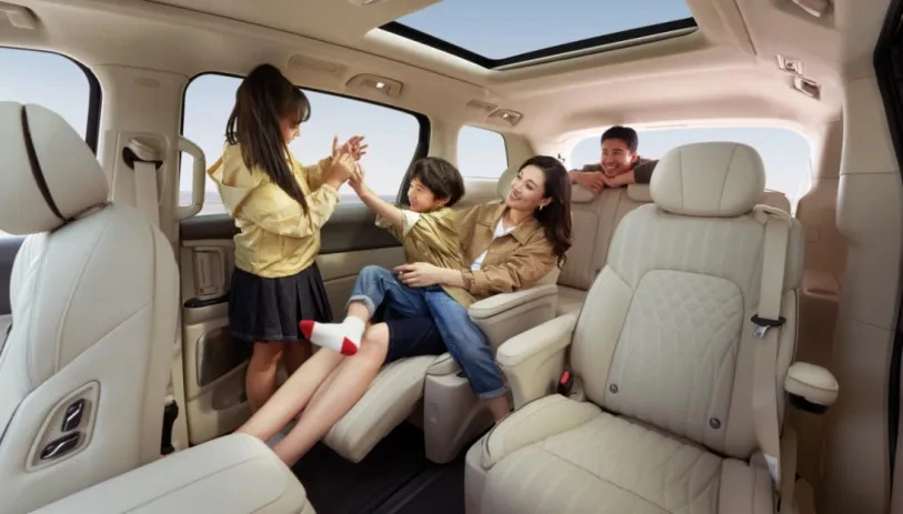 空间布局与智能配置上,梦想家也展现出全面实力。其5315/1985/1820mm的车身尺寸与3200mm的轴距,为乘客提供了更为宽敞的乘坐空间。7人满载情况下,后备厢仍能容纳427L的行李,后排座椅放倒后更可扩展至2680L。智能方面,梦想家搭载了12.3英寸三联屏设计,在高通8155芯片加持下,配备了L2+级智能驾驶辅助系统、四音区语音交互和手势识别功能,整车支持OTA升级,保证了车辆的持续进化能力。