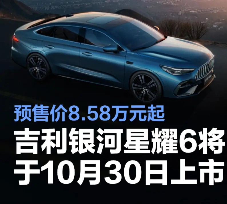 吉利银河星耀6将于10月30日上市,预售价8.58万元起!吉利银河这回可真是放了个"大招"!星耀6上来就直接把插混中型车的价格"打"到了7.98万起(限时先享价)。