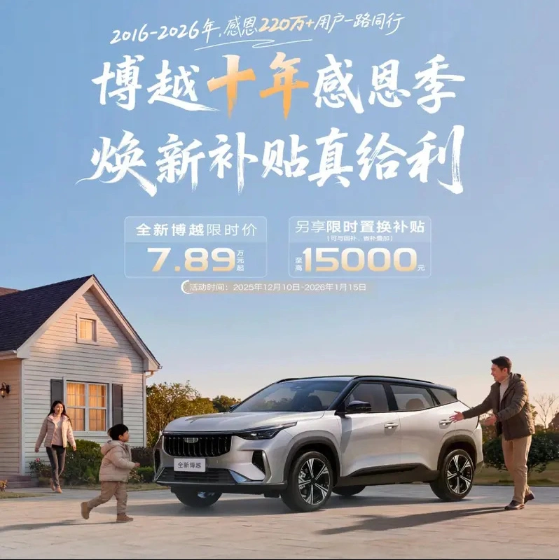 各位老铁,隔壁老王我又来了。今儿咱们不聊那些刚出炉的“当红炸子鸡”,回头看看一位车坛的“老朋友”——吉利博越。这车可有些年头了,当年也是“国产三好生”的代表。最近,这位老朋友打扮一新,带着“新中式居家美学”的设计和至高15000元的置换补贴,限时价7.89万起,又杀回来了。今天,咱就像老友重逢,看看这位“故人”身上,添了哪些新本事,还能不能在哈弗H6、长安CS75 PLUS这些老对手面前,再显显身手。