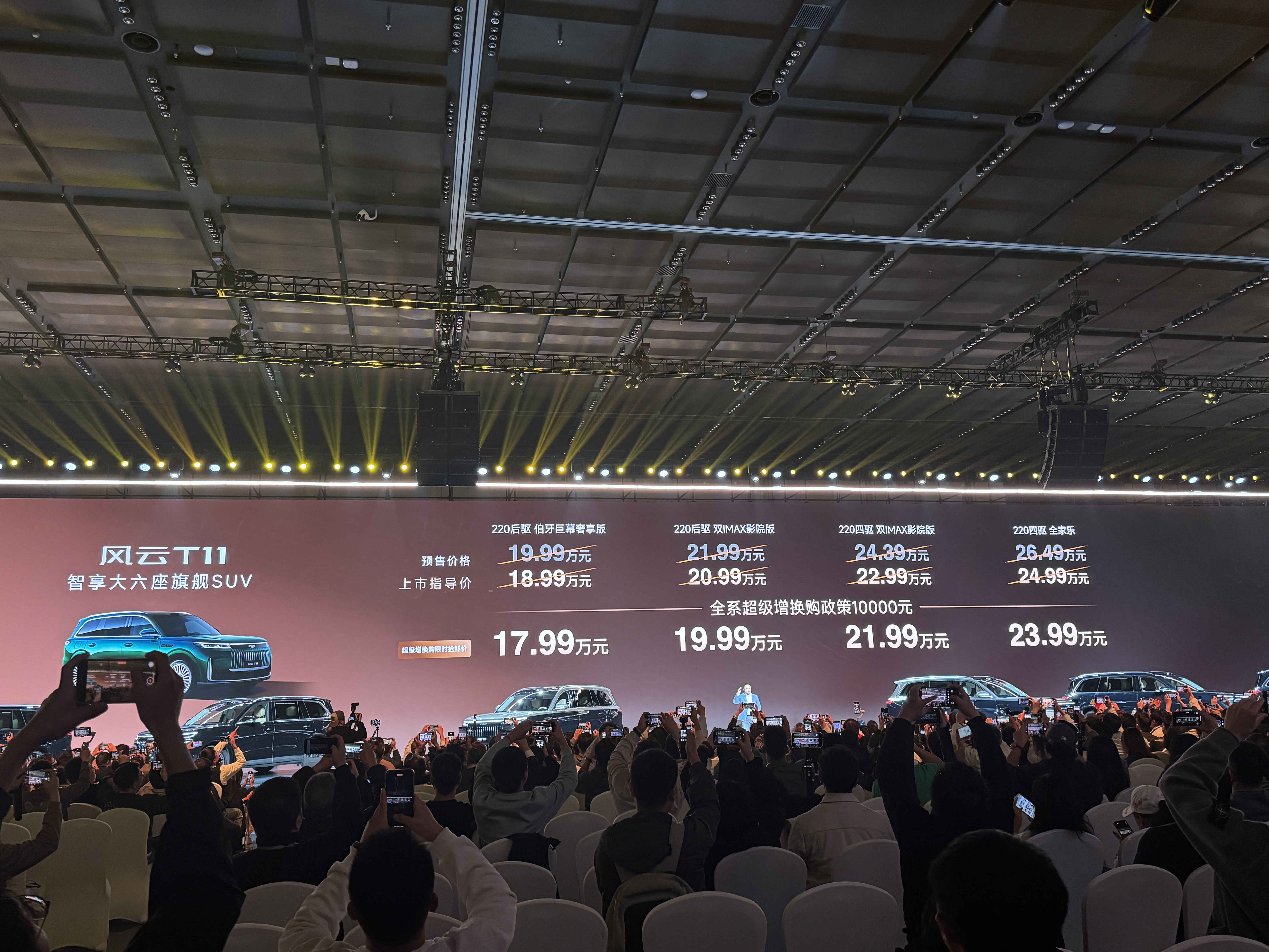 奇瑞风云品牌发布了焕新后的首款旗舰SUV——风云T11。风云T11定位“智享大六座旗舰SUV”,官方限时抢鲜价17.99万元起,共推出四款配置版本,最高至23.99万元,并同步推出七重购车礼与七大终身服务权益,覆盖补贴、选装、金融、流量及充电桩等多方面,让入门即豪华的体验成为现实。