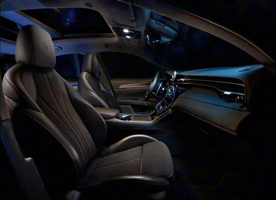 先说这车本身,即便卖到35万,它的“形”依然是百万级的。玛莎拉蒂的家族设计,经典的三叉戟徽标、流畅的轿跑SUV线条,那份意大利式的优雅与运动感,是刻在骨子里的。坐进车内,高级真皮、精致缝线、金属换挡拨片,材质和工艺的底蕴依然在线。单论静态的豪华氛围和设计美感,它对比同价位的“56E”(宝马5系、奥迪A6L、奔驰E级)甚至一些新势力,依然有着独特的格调优势。但问题在于,这份“格调”在电动车时代,被重新定义了价值。