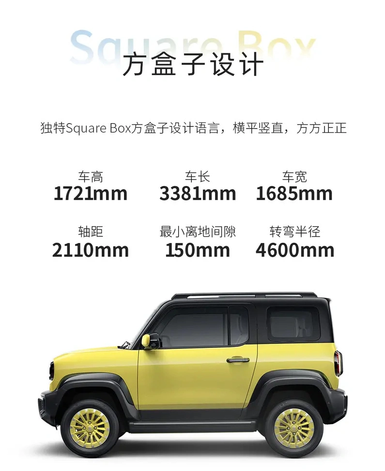 150mm的最小离地间隙,比缤果的120mm、小蚂蚁的110mm高不少,小区门口的减速带、城市里的坑洼路,不用小心翼翼减速,通过性堪比小型SUV。新增的显眼包黄、疗愈蓝车色,搭配全新轮毂,潮玩范儿十足,比缤果的常规造型、Lumin的可爱风更有个性,年轻人开出去不撞款。