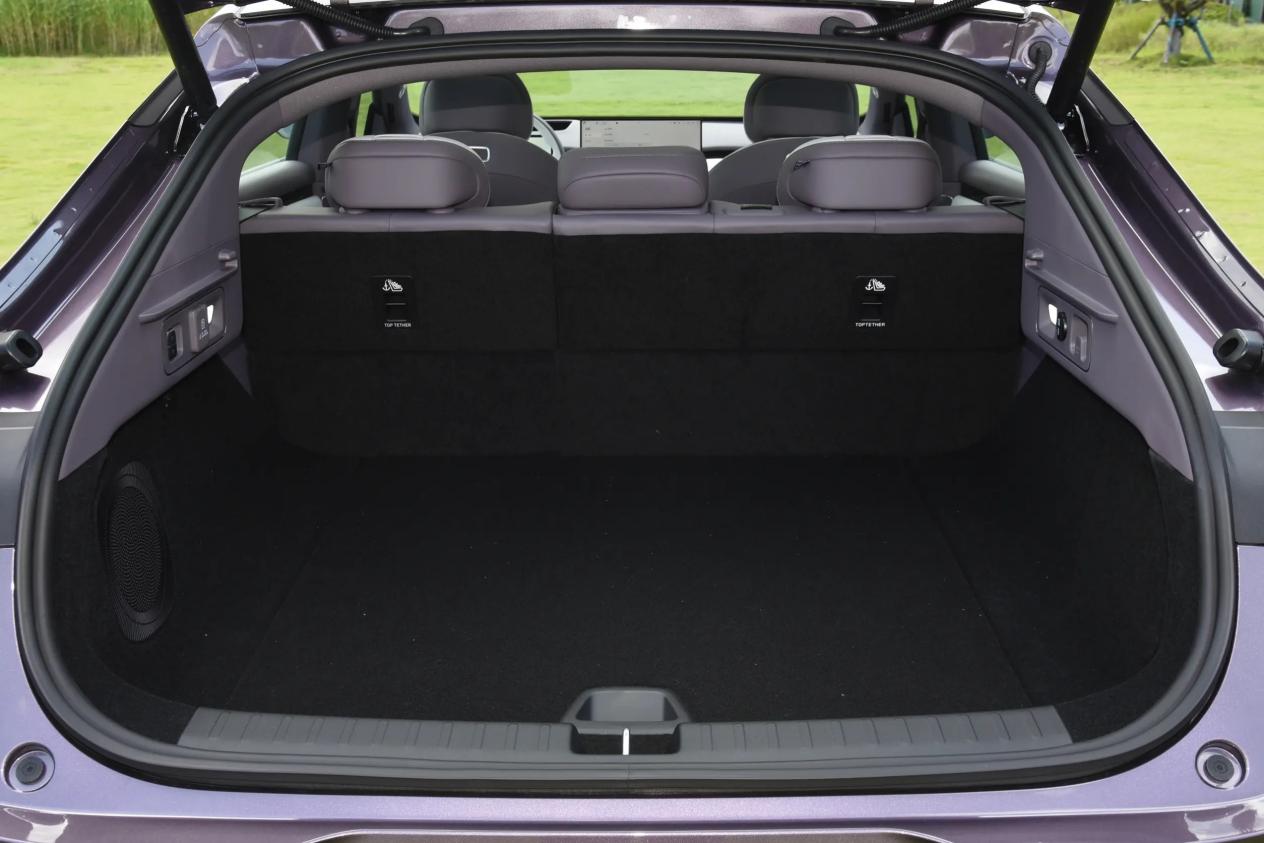 侧面车顶的大溜背造型看上去很顺滑,前后悬较短,轴距挺长,车身比例协调。配半隐藏式门把手和无框车门以及无框后视镜,尾部设计了挺翘的鸭尾造型,尾灯则由274颗灯珠组成矩阵式星环造,支持自定义灯语与迎宾流水动态效果,增添仪式感。