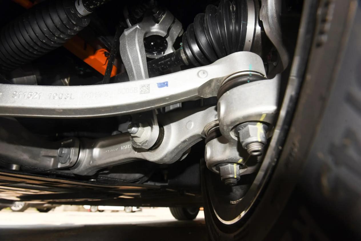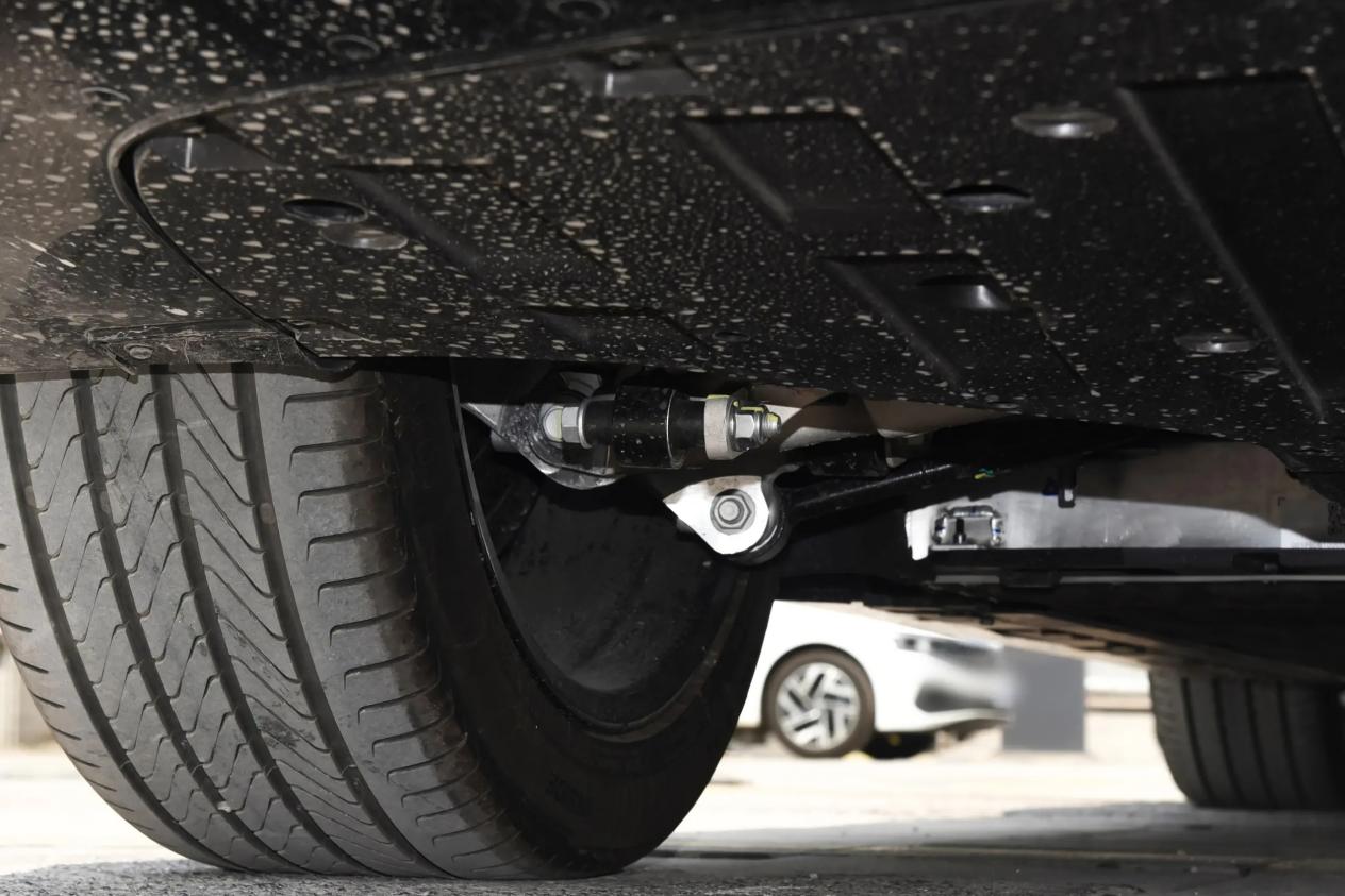 底盘调校兼顾舒适与操控,前双叉臂后五连杆悬架组合,前段软后端硬,调校偏舒适,在面对细碎颠簸时过滤得很干净,过减速带时也不会有生硬的冲击感。车身姿态控制得当,快速过弯时侧倾抑制得比较好,给驾驶者充足的信心。
