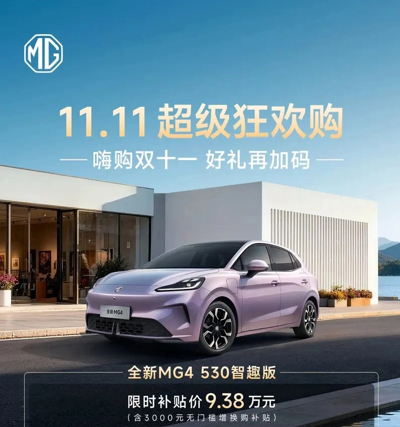 大家好,我是隔壁老王,今儿得好好唠唠赶上双十一钜惠的全新MG4,530智趣版直接砸出2.7万元大定权益+300元购物卡,优惠后实际入手价才7万出头,带着800V高压平台、530公里续航和欧洲五星安全认证,要在10万级纯电市场跟比亚迪海豚、五菱缤果这些热门款正面硬刚,预算有限又想一步到位的年轻人,这下捡着宝了。