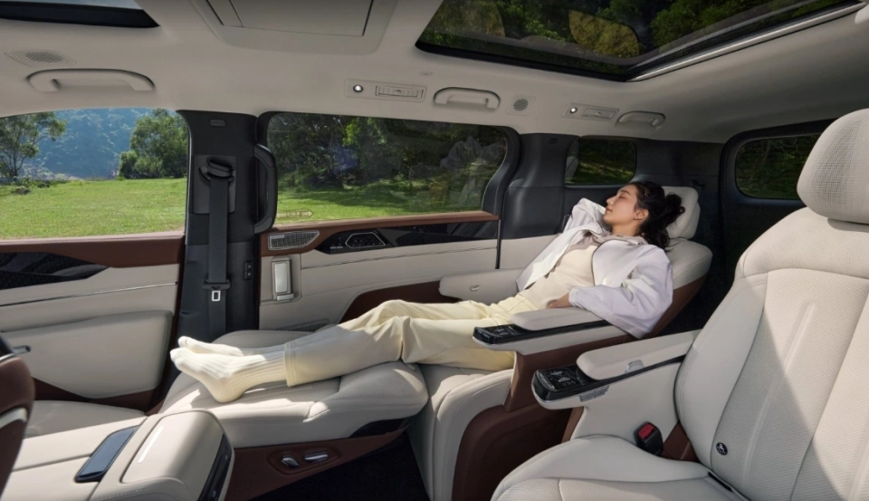 坐进车内,最让人满意的就是它的空间表现。2+2+3的座椅布局相当合理,第二排是两个独立的航空座椅,带电动调节、加热、通风功能,坐上去确实舒服。第三排也不是摆设,成年人坐进去也不会觉得憋屈。后备箱空间在满员情况下还能放下几个登机箱,这点比很多同级别MPV都要强。