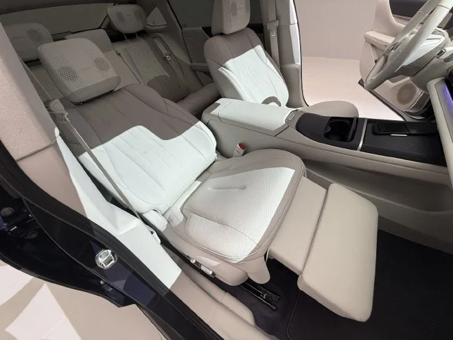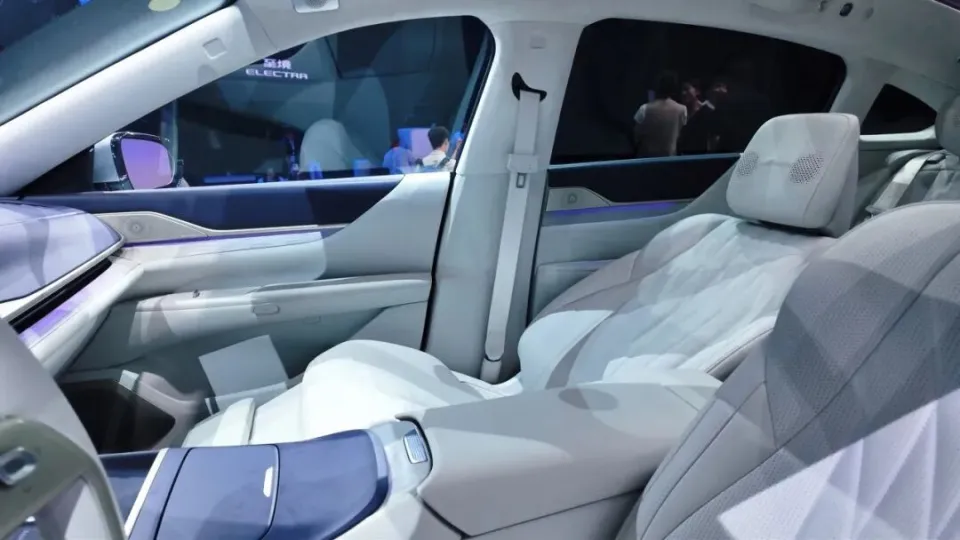 初见至境L7,其“水生美学”设计理念营造出兼具优雅与动感的轿跑姿态。超过5米的车长和3000mm的轴距赋予了它舒展的侧面线条,而无框车门和融入智驾“小蓝灯”的贯穿式尾灯等细节,则进一步强化了其科技与前卫的品牌形象。坐进车内,一股简约而富有科技感的氛围扑面而来。10.25英寸液晶仪表、15.26英寸中控大屏与50英寸全景AR-HUD组成的多屏交互系统,构成了信息显示的核心。其搭载的高通SA8775P芯片提供了72TOPS的强劲算力,确保了系统流畅度。艾维亚版本配备的NAPPA真皮座椅,集成了加热、通风和按摩功能,结合27扬声器的BuickSound音响系统,在豪华质感的营造上可谓不遗余力。