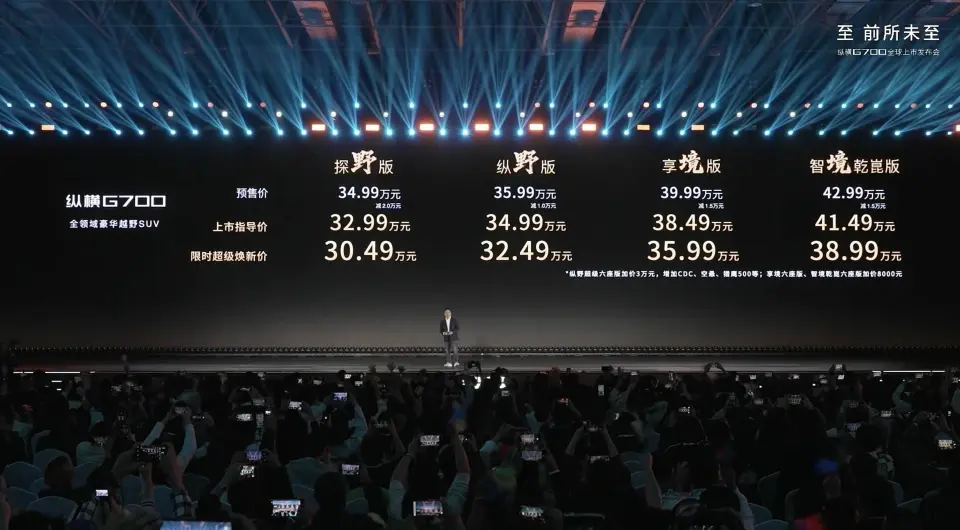 纵观市场前景,纵横G700以32.99万至43.79万元的官方指导价(限时焕新价30.49万元起)切入市场,相比方程豹豹837.98万元的起售价以及坦克500新能源35.50万元起的售价,展现出一定的价格弹性。其上市前后订单量迅速突破数万的成绩,也印证了市场对其产品力的初步认可。然而,在品牌积淀方面,捷途纵横作为新兴的豪华越野序列,与已形成市场认知的坦克系列或依托比亚迪新能源光环的方程豹系列相比,仍需时间构建用户的深度信任。