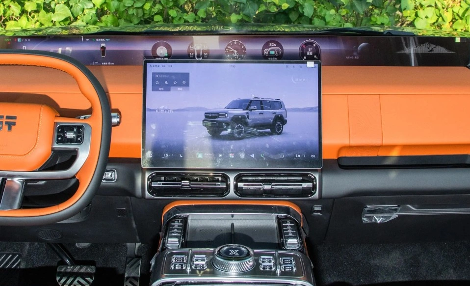 置身车内,纵横G700通过35.4英寸贯穿式显示屏、15.6英寸悬浮中控屏以及高配车型上的17.3英寸后排影院屏,构建了一个充满科技感的移动座舱。Nappa真皮座椅、二排通风按摩功能以及莱斯康音响系统则奠定了其豪华基调。在智能驾驶方面,顶配车型搭载的华为乾崑智驾ADS 4.0系统,通过激光雷达与27个感知元件实现了高阶智能驾驶能力,这与方程豹豹8可能搭载的比亚迪DiPilot系统形成了差异化竞争。