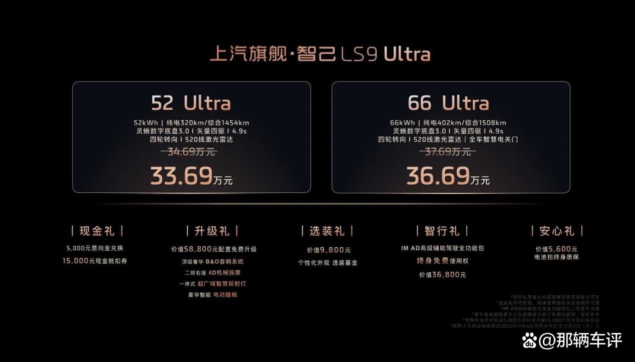 如果你觉得大六座SUV不是费油就是难开,智己LS9这次可能真要颠覆认知了。11月4日,上汽旗舰智己LS9正式预售,两个版本限时权益价33.69万和36.69万——价格卡在理想L8和问界M9之间,但配置单堆得有点狠。