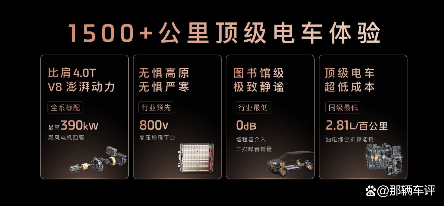 大车最怕长途趴窝,LS9直接上了“恒星超级增程”。官方说全程保持电车性能,亏电也不变“软脚虾”,综合续航1500km,纯电续航402km。换算成日常场景:上海到北京中途不用加油充电,周末郊游纯电够用两周。更关键是800V架构+双电机四驱,零百加速4秒级,比燃油V8还猛,但百公里油耗折算才2.81L——这账算下来,家里领导批预算时阻力能小点。
