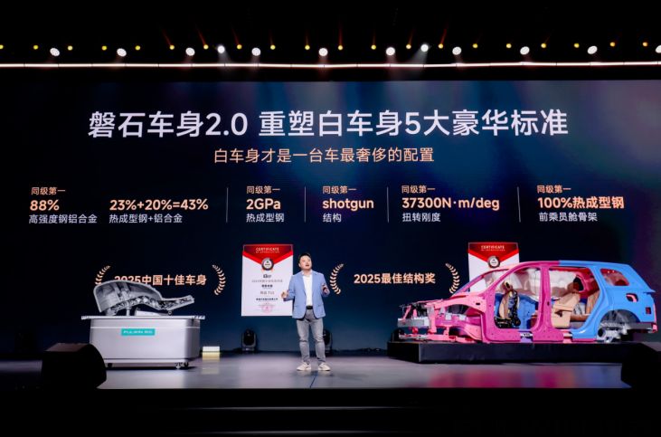 作为风云品牌焕新后的首款旗舰车型,风云T11的开发逻辑明显围绕家庭用户的核心诉求展开。安全方面,全系标配磐石车身2.0,整车高强度钢与铝合金占比达88%,热成型钢强度达到2GPa,车身扭转刚度为37300N·m/deg。在正柱碰、侧柱碰和高速追尾三项实车碰撞测试中,乘员舱结构保持完整,A柱、B柱未出现断裂或压溃,三排气囊均正常展开,说明其被动安全体系在设计上具备应对真实事故场景的能力。