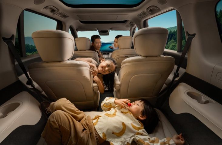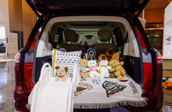 空间表现是风云T11的重点之一。车长5205mm,轴距3120mm,第二排腿部空间达到1022mm,第三排支持全电动调节,身高1.9米的乘客也能获得相对舒展的坐姿。后备箱容积1590L,配合40处储物空间和三温区独立空调,适配城市通勤、长途自驾、露营等多种使用场景。通过语音指令可一键将二三排座椅放平,形成1.8米的平整空间,拓展出更多生活化用途。