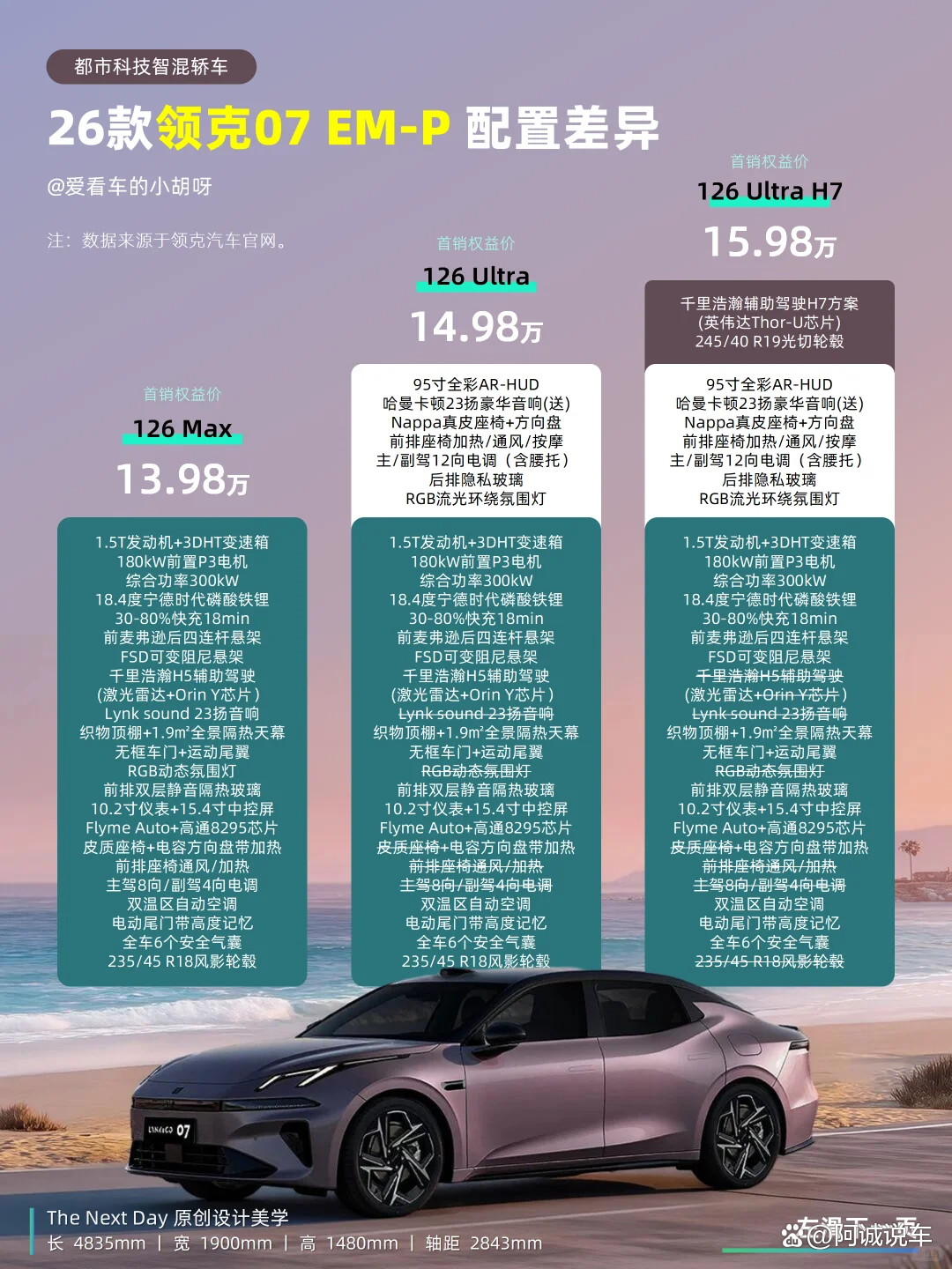 谁懂啊!领克 07 EM-P 直接把 “颜值即正义” 焊在车身上!全球首创的 “意境式设计美学”,无框车门 + 隐藏式水切,看着就清爽又高级。✨这灯光谁不迷糊:前脸 “Y” 型破晓日行灯 + 贯穿大灯,还有 26 颗 LED 的都市跃动科技带,一解锁就流光溢彩,仪式感直接拉满!🎨新配色太会了:除了老款色,新出的 “旷晶绿” 巨绝!低饱和绿混着金属漆,光线照过来,墨绿、青灰、浅金来回变,潮到犯规!智能座舱天花板!领克这套 LYNK Flyme Auto 系统,再配上高通骁龙 8295 芯片,操作跟玩手机一样丝滑,完全不卡顿。・多屏互联超能打:92 英寸 AR-HUD、15.4 英寸灵动屏、10.2 英寸液晶仪表,还有独家首发的 12.6 英寸可拆卸 Co Pad,几块屏幕联动超顺畅。・辅助驾驶够硬核:激光雷达是标配,能实现 37 项辅助驾驶功能,连 “满血版车位到车位领航” 都有,长途、城区都省心。・泊车黑科技绝了:全系给 30 + 全场景泊车功能,超窄车位(车宽 + 40cm)用 APA 自动泊车轻松搞定;不想下车?RPA 能离车泊入;不规则车位更简单,FTP 指尖泊车划下手机就行。