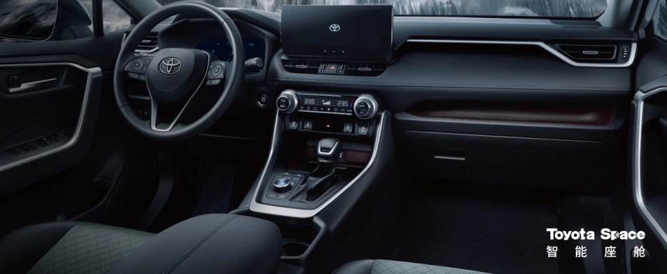 坐进车内,荣放的内饰设计走的是实用路线,没有太多花哨的元素,但该有的功能一个不少。中控台采用平直线条勾勒,层次感不错,皮质和搪塑材料的搭配也符合这个价位的水准。10.25英寸的中控屏支持CarPlay、CarLife和华为HiCar,日常使用非常方便。12.3英寸的全液晶仪表盘显示清晰,信息丰富,尤其是驾驶辅助系统的状态一目了然。值得一提的是,荣放的储物空间设计很人性化,副驾驶前方的开放式储物格和主驾左侧的小储物槽都非常实用,放手机、钥匙或者高速卡都很方便。