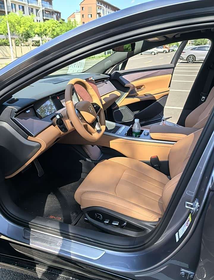 这车在比亚迪里绝对是旗舰级别的,跟汉L的定位很配。腰线设计得特别好看,整车运动又不失稳重。墨竹青的熏黑中网特别有运动感,这也是我选这个颜色的原因。大灯辨识度超高,远近光亮度都够。中国风的尾灯我也特别喜欢,跟前大灯一起组成的迎宾灯和欢送灯,高端大气上档次!而且比亚迪的后尾标白天是金属的,晚上还能亮,设计得太巧妙了👏。245/45/19的米其林轮胎也挺配这车的,后驱版本够用,抓地力没问题,高速上还很安静。内饰方面,我最满意的就是实木内饰了,太显档次了!其他用料和工艺也都不错,冰箱彩电大沙发都有。就是刹车的时候,主驾座椅会有点位移,这点不太满意😔。