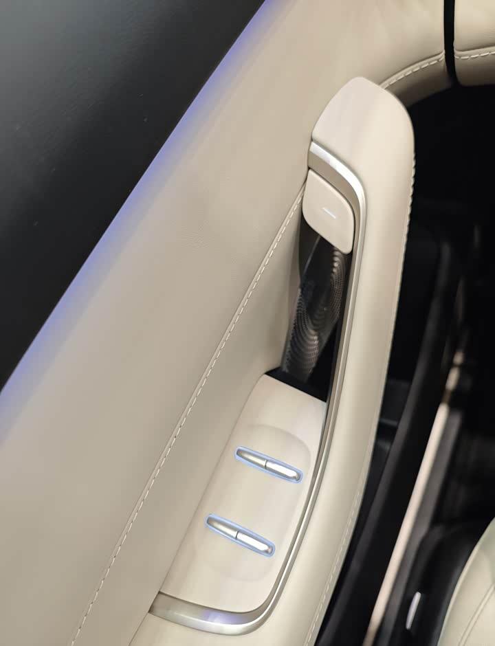 ES6的外观设计属于“越看越耐看”的类型,没有复杂的线条,整体简约大气又有辨识度。前脸的“X-Bar”设计很有科技感,搭配分体式大灯,白天精致,晚上点亮后辨识度超高;车身侧面的溜背造型让整车看起来更动感,不像传统SUV那样笨重;尾部的贯穿式尾灯和隐藏式门把手,进一步提升了整车的高级感。最直观的是用料的诚意,触手可及的地方几乎都是软质材料包裹,中控台、门板内侧、座椅靠背都用了细腻的Nappa真皮,指尖划过能感受到皮质的温润纹理;空调出风口的拨片、方向盘的多功能按键边缘,搭配了哑光金属饰条,触感冰凉且有分量,既避免了塑料件的廉价感,又不会像亮面材质那样容易沾指纹。就连脚下的地毯,都用了厚实的短绒材质,踩上去柔软且隔音,日常上下车时,鞋底的细微声响都会被弱化,让车内更显安静😌。