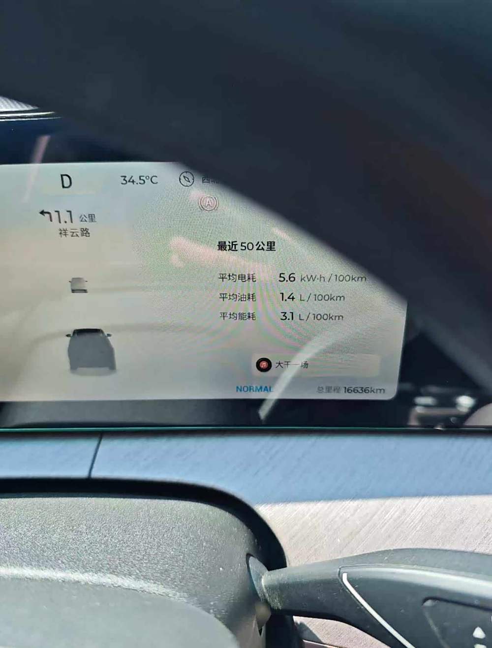 这车官标能跑210KM,车机显示160KM,实际跑下来,夏天4个人开空调,大概能跑180KM-190KM。电耗看路况,最低我跑到过一点几,平均下来17-19左右,这么大个车,这电耗还算可以接受啦😉。