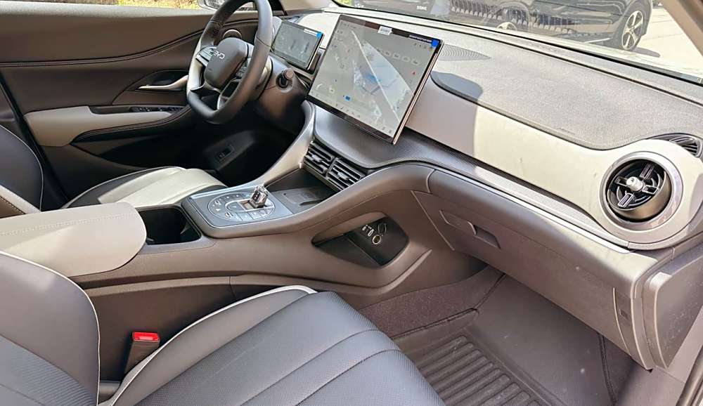 外观设计我特喜欢,颜色低调又显质感,停在小区里辨识度老高了,前脸的灯组是犀利的鹰眼造型,晚上开车亮得很,对向车老远就能瞧见👀。车身线条从车头溜到车尾,侧腰有一条微微上扬的腰线,看着特运动,我那开改装车的表弟都说这线条够味儿。轮毂设计透着点霸气,跑烂路也结实,上次去乡下走泥路,回来擦干净照样精神。内饰风格偏简约,中控台干干净净的,按钮不多,看着清爽。座椅是仿皮的,摸着不硬,我开两小时长途腰不酸,我妈坐后排也说比家里的沙发舒服🛋️。中控屏15.6寸,操作起来跟平板似的,儿子总爱用它看动画片,挺方便。就是新车味儿散得慢,还有就是塑料件稍微多了点,中控台摸着手感一般,要是能多来点软包就更完美了。