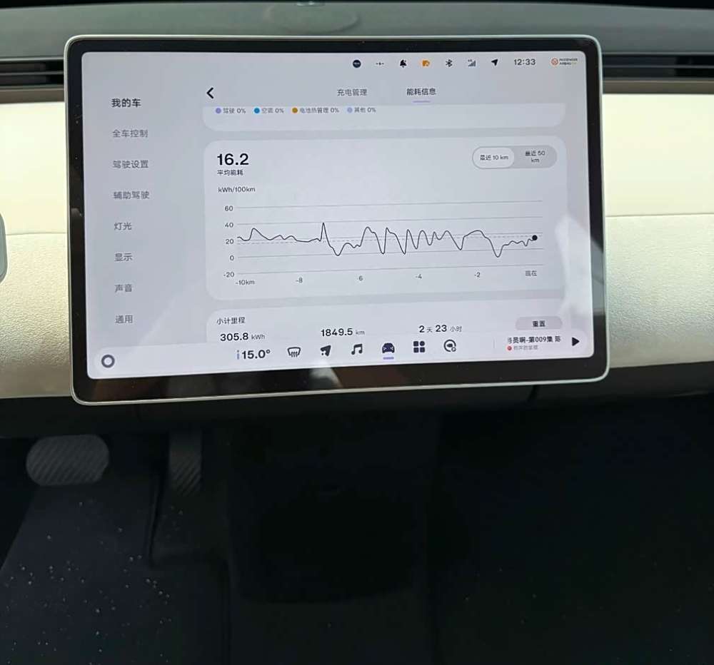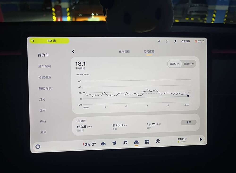 日常用的话,续航还算可以。我开车有点猛,平均满电能跑300KM左右,和宣称的1度电10公里有点偏差😂。我上下班往返大概30公里,一周充一次电就够了,挺省心的。开空调、听音乐这些日常消耗,对续航影响也不大。周末带家人去周边城市玩,跑高速时能耗会高点,但整体还能接受。我实测满电跑到极限高速,挂着辅助驾驶跑的话,大概能跑250公里,剩下的电量我就不敢再开了。🔋