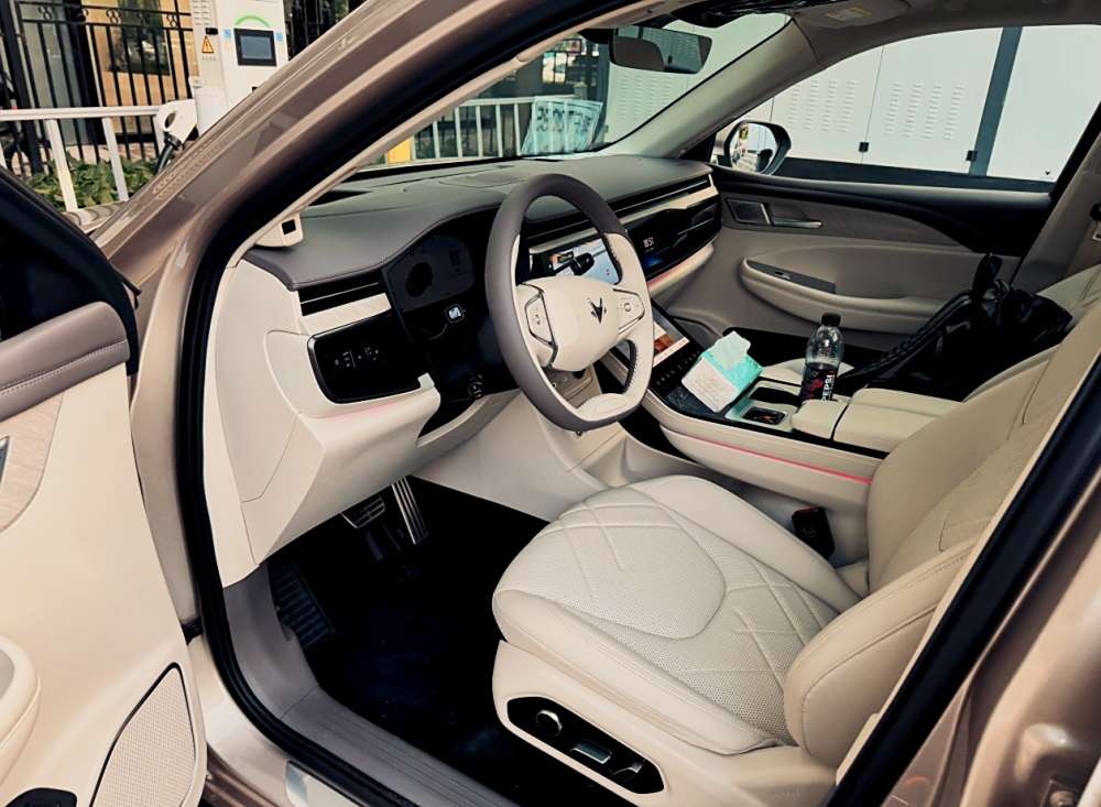 车身做工确实挺不错的👍。车门和车身的缝隙特别均匀,手指摸过去不会有高低不平的感觉。车漆质感也挺好,有次停车被旁边的车开门蹭了一下,本以为得留痕,结果仔细一看就轻微几道印子,用布擦擦几乎看不出来👀。坐进车里第一感觉就是没什么刺鼻味道,用料应该挺环保的。中控台和门板上大部分都是软包材质,摸起来软软的,手肘靠上去特别舒服😌。座椅是仿皮的,没有那种廉价的塑料味。