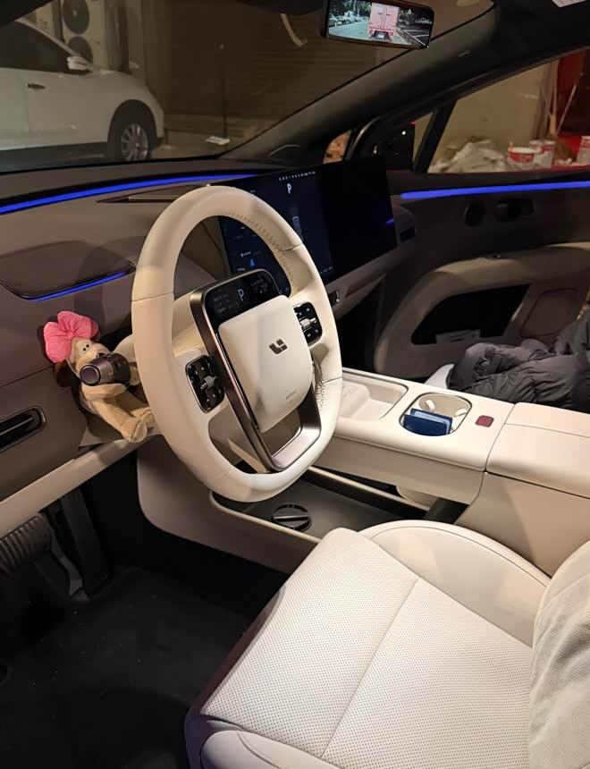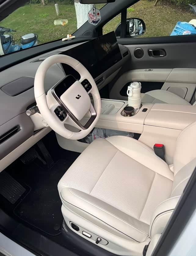 刚开始选车的时候看到理想i系列,我还觉得有点丑呢,但是后来越看越好看。比较圆润的设计真的很耐看。内饰我选的是白色的,因为没有小孩,所以不担心不耐脏。这个颜色真的很好看,而且我觉得它有点灰白的感觉,并没有大家想象的那么不耐脏。