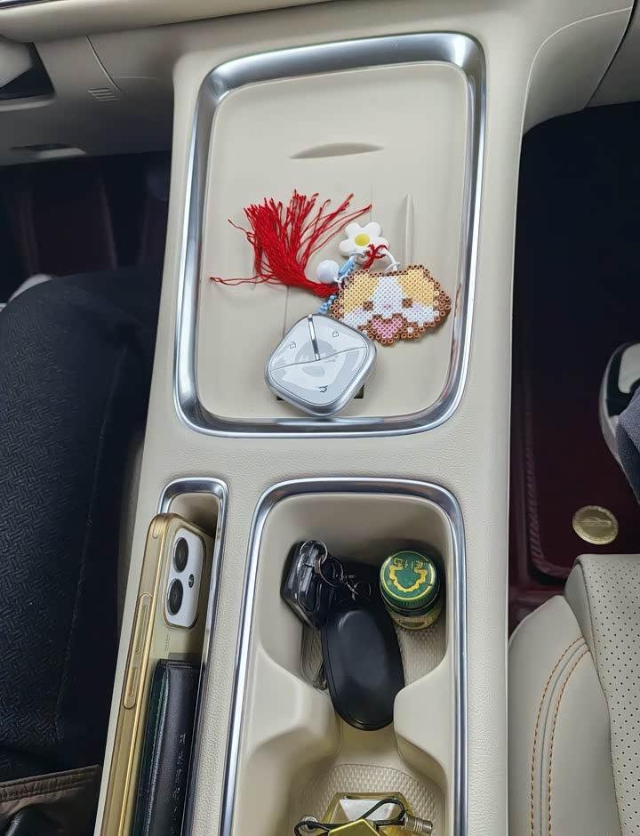 我这灰色车漆在太阳底下会泛点粉色,还挺特别的😎。前脸设计更运动,不像缤果那么圆润。后尾灯是贯穿式的,挺时尚。座椅是仿皮的,环抱式设计,坐上去软乎乎的,很舒服。隔音效果比之前好多了,关上窗,跑起来外面声音小很多。车子开起来也稳多了,过减速带不会颠得厉害。双层中央扶手挺实用,上面放手机、奶茶都方便,还有专门放口红的地方。