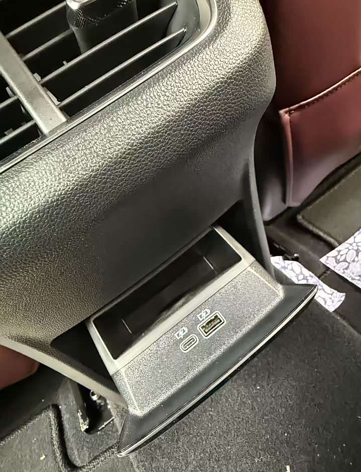后排的乘坐空间属于中等水平,膝部空间很宽裕,但是头部空间稍显局促,因为全景天窗占据了一部分后排的头部空间,即便靠背调到最躺,高个子乘客的头发还是会蹭到顶棚,只能调整坐姿来避免,以膝部空间换头部空间。