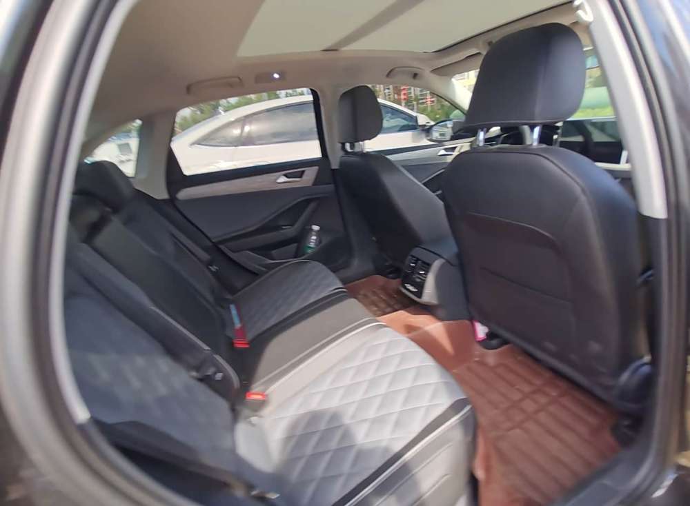 这一代速腾的轴距增加了3厘米,车长增加了接近10厘米,这些长度基本都体现在后排空间上,如果驾驶员个子不是太高,后排的乘客可以比较轻松地翘起二郎腿,纵向空间非常充裕。头部空间表现正常,1米8以上的乘客可能会稍稍蹭到头发,但是不算很压抑。横向空间本来可以轻松坐下三个成年人,但是后排中央有一个MQB平台惯有的隆起,中间的乘客只能岔开双腿乘坐,而中间座椅的坐垫和靠背都比较突起,长途乘坐就不太舒服了。