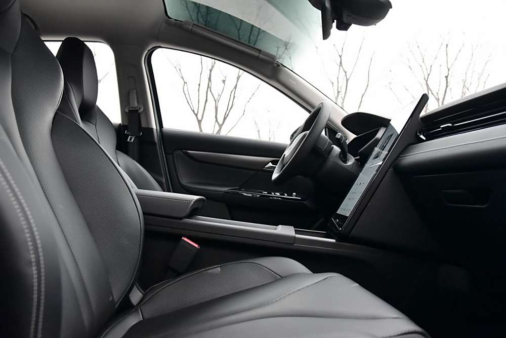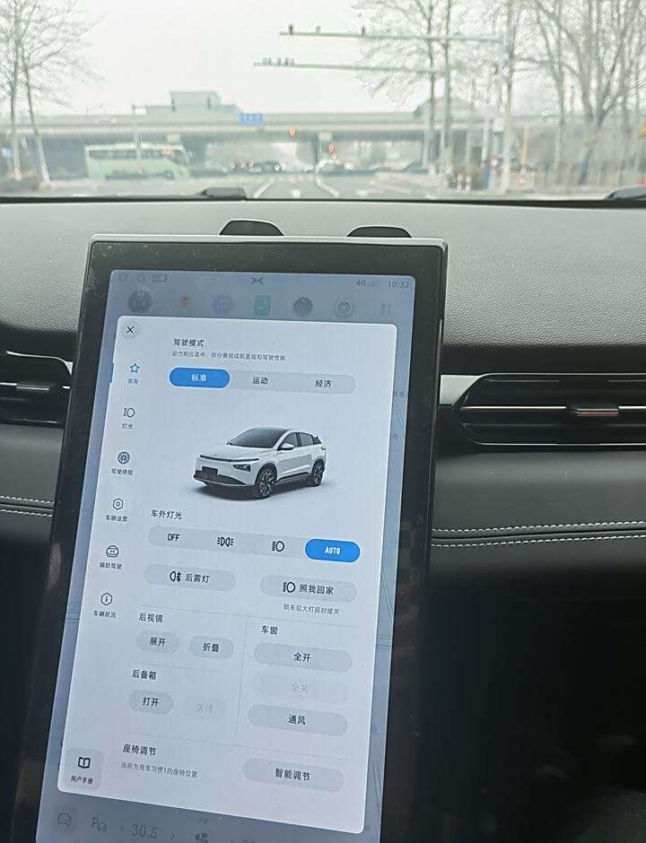 外观简洁大气,车身线条流畅,看着就挺舒服的。隐藏式门把手设计挺巧妙的,避免了车与车之间的磕碰。内饰方面,真皮材质的方向盘和门板包裹手感都很好。座椅设计也挺舒适的,填充物饱满,有回弹力,坐着挺舒服的。中控大屏也很智能,支持语音识别、车联网等功能,开车时可以通过语音操作,很方便。