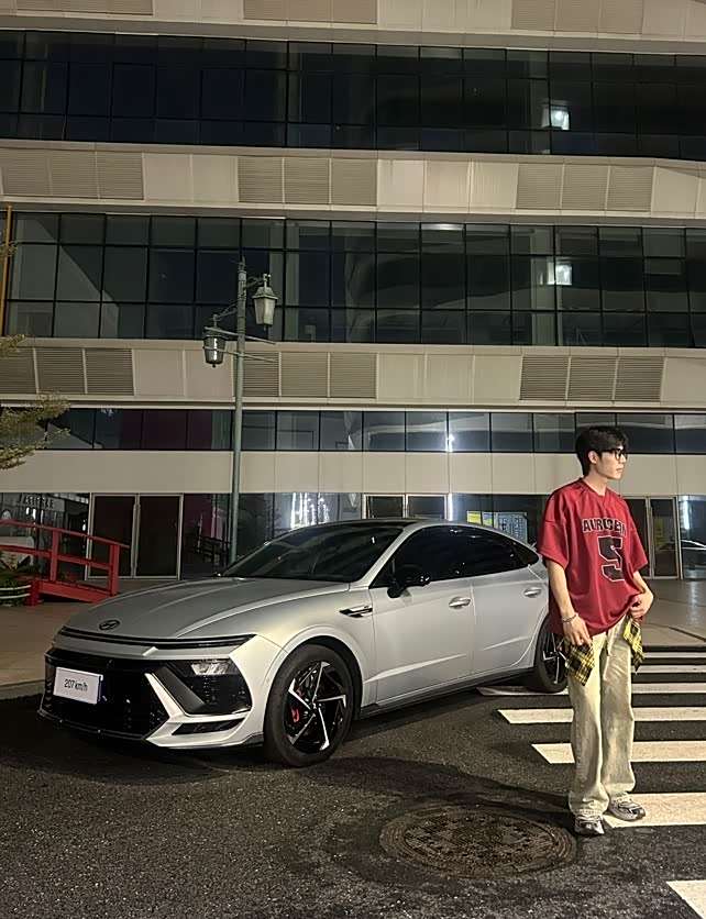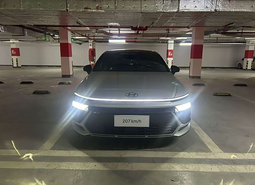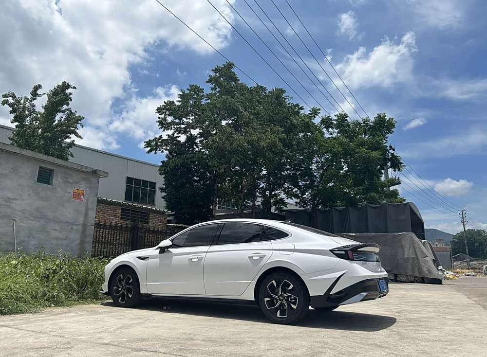 这一代索纳塔在外观上挺有辨识度,沿用了Sensuous Sportiness设计是必然的。在这个基础上,它还有很多突出设计感的部分。轿跑造型,前悬较短、引擎盖低垂、后轮拱略宽,运动感很明显;在菲斯塔上稍显违和的鲇鱼嘴前脸,换到尺寸更大的索纳塔上和谐了许多;两条镀铬条连接车窗和灯组,并在靠近灯组的部分做了日间行车灯;轴距接近3米,车长接近5米,已经有点摸到C级车尺寸了,加上16.18万的起售价,给人一种量大价优的感觉。